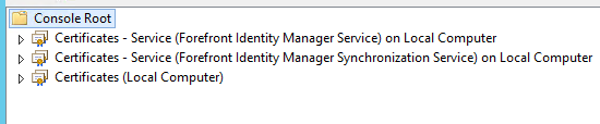 Es müssen ebenfalls alle Forefront Zertifikate aus allen 3 Zertifikatsspeicher gelöscht werden: