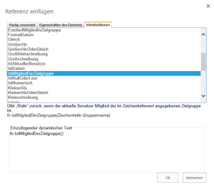 Unter dem 3. Reiter, Inlinefunktionen gibt es eine Funktion: IstMitgliedDerZielgruppe.